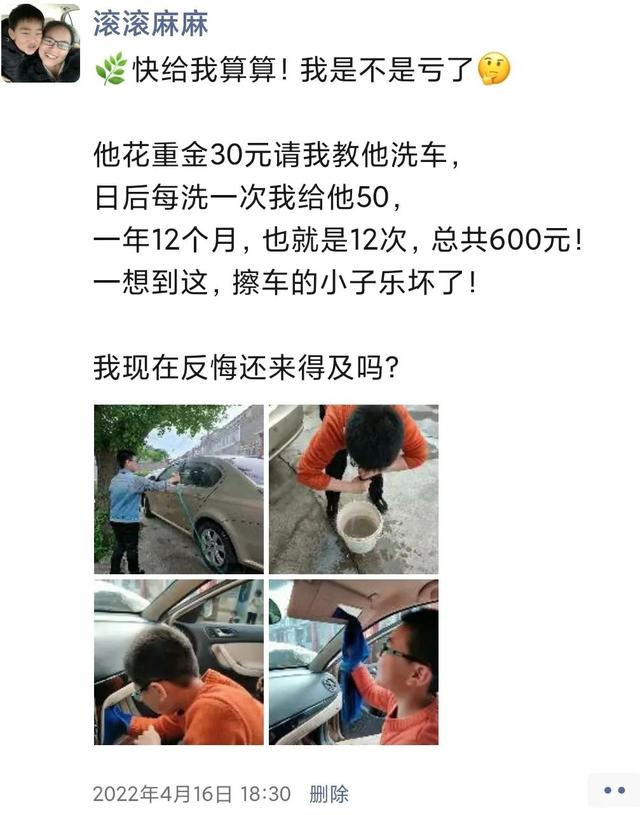 但孩子确实很喜欢钱,最爱做的事情——捧着他的钱包笑之美美地数钱。而我也从来没有避讳和他谈钱,我们还会设置很多赚钱的方式,比如给我洗车之类!