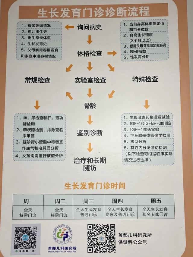 为注射生长激素的安全,患儿应检查的内容包括骨龄片、鞍区核磁共振、腹部彩超、生长激素、甲状腺功能、血尿常规、血生化等约 20 项。