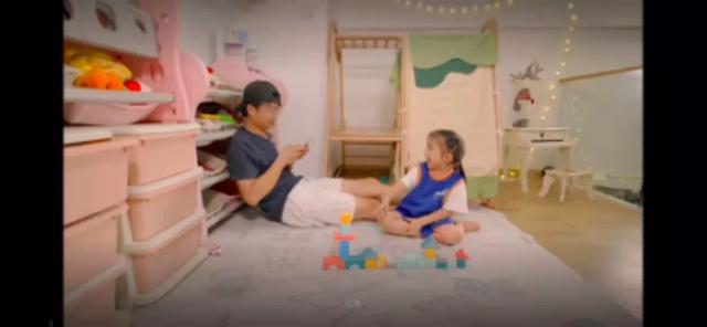 看过这样一个短视频,小女孩在视频中对着镜头展示爸爸陪她玩的状态。